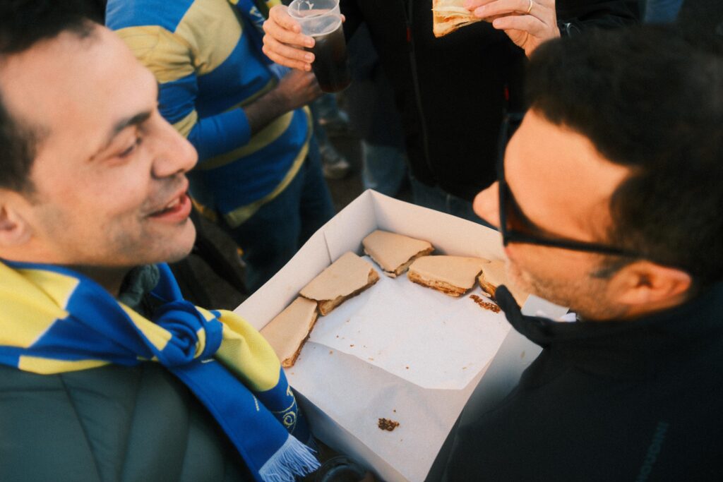 O espírito desportivo brilhou quando alguns adeptos do Tirsense ofereceram jesuítas, o famoso bolo típico de Santo Tirso, aos seus adversários. Um gesto de fair play e respeito entre as duas claques. Este foi um convívio onde a cerveja e a paixão pelo futebol imperaram.Os cânticos de ambas as equipas ecoavam pelo local, aquecendo ainda mais o ambiente antes do grande jogo. Um dos adeptos d’O Elvas explicou que o melhor momento desportivo da vida dele tinha sido a vitória na fase anterior, frente ao poderoso Vitória SC. Afirmou ainda que as “gentes de Elvas” são amigáveis e boas a receber. Têm prazer em confraternizar e beber uns copos com os rivais antes do jogo. Garantiu que isso aconteceu com todas as equipas que defrontaram, reforçando o espírito acolhedor da cidade.
